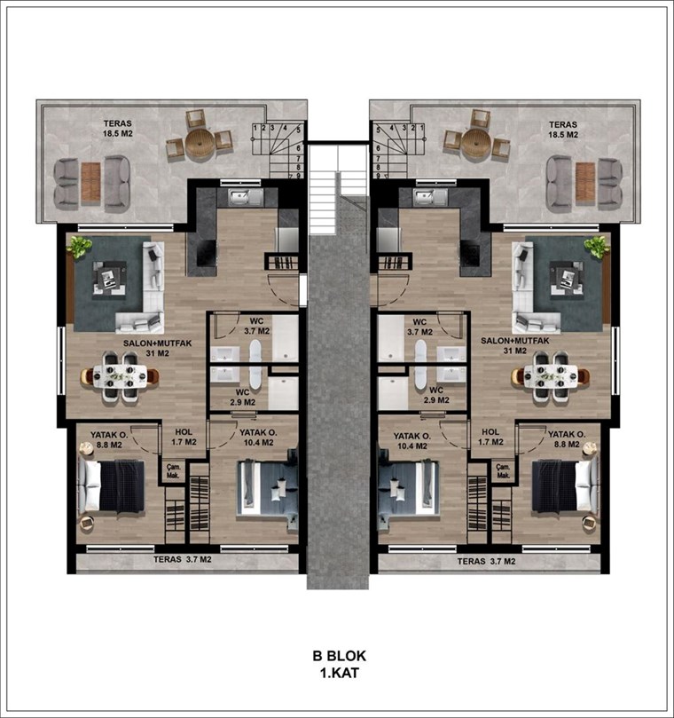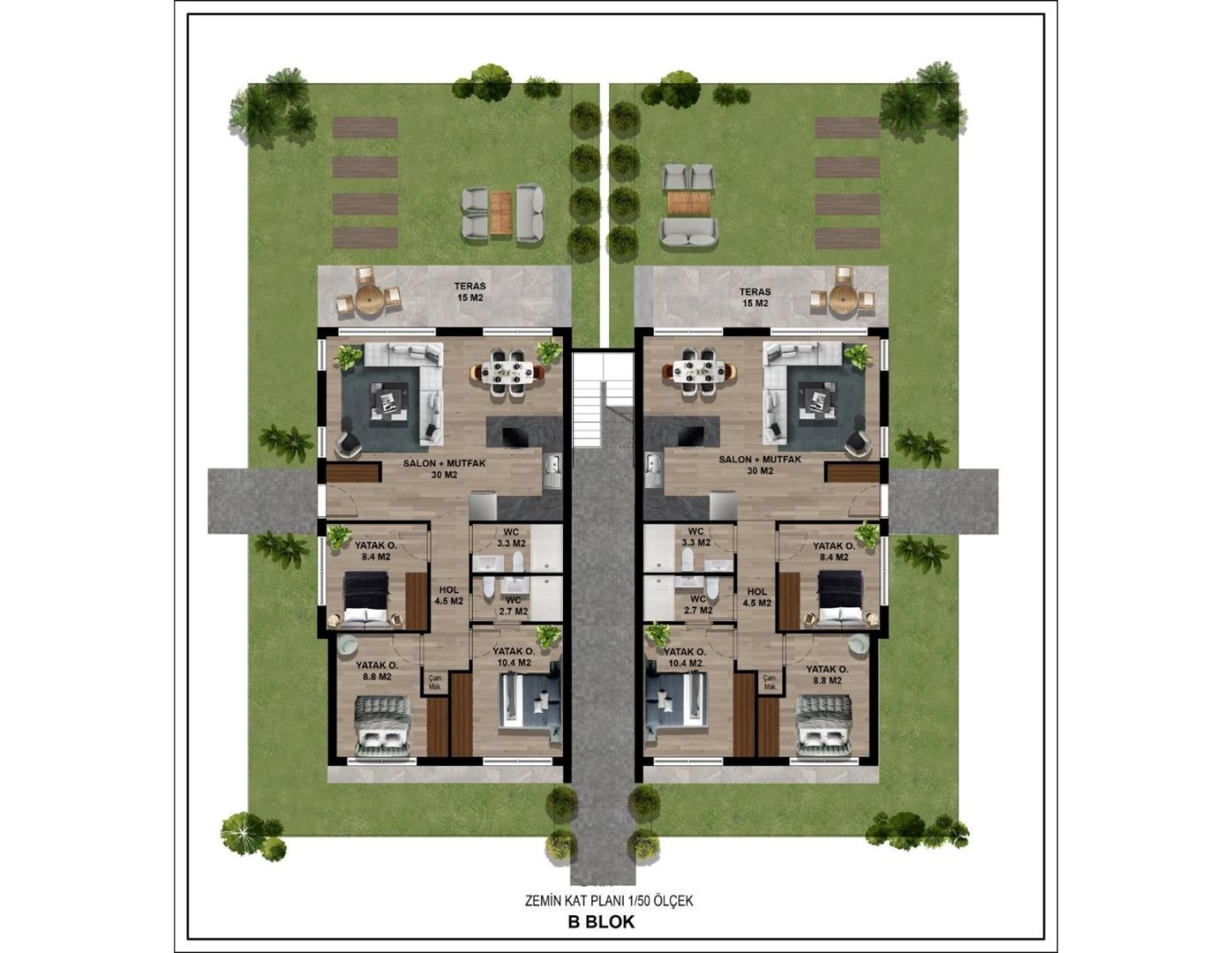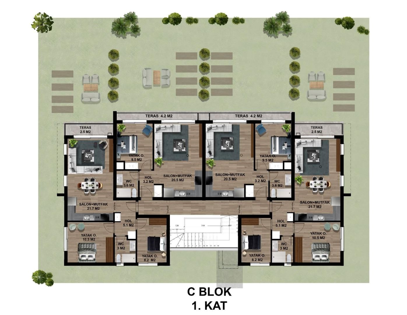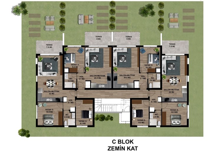 A1C1 BLOK; 1+1    FIRST    EAST    54 m²    4.2 m²    50 m²        108.2 m²    £140.000 A2 BLOK;1+1    GROUND    NORTH    55 m²    9 m²            64 m²    £140.000 B1 BLOK; GROUND    NORTH-EAST - SOUTH    92 m²    15 m²        100 m²    107 m²    £230.000 B2 BLOK; GROUND    NORTH-WEST - SOUTH    92 m²    15 m²        100 m²    107 m²    £230.000 B3 BLOK; GROUND    NORTH-WEST - SOUTH    92 m²    15 m²        100 m²    107 m²    £230.000 A3 BLOK; 1+1    GROUND    NORTH    55 m²    9 m²        60 m²    65 m²    £140.000 C1-C2 BLOK; 3+1    GROUND    NORTH-EAST - SOUTH    100 m²    21 m²    40 m²    100 m²    161 m²    £250.000